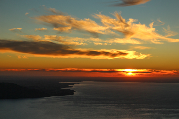 On admire le coucher du soleil sur le lac, wouahou ! La nuit s’annonce bien calme (on est 3 fourgons sur l’immense terrain), et bien fraîche, aussi.